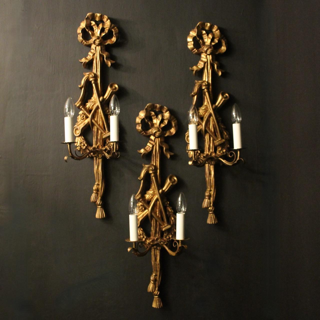 French Set of 3 Giltwood Twin Arm Wall Lights