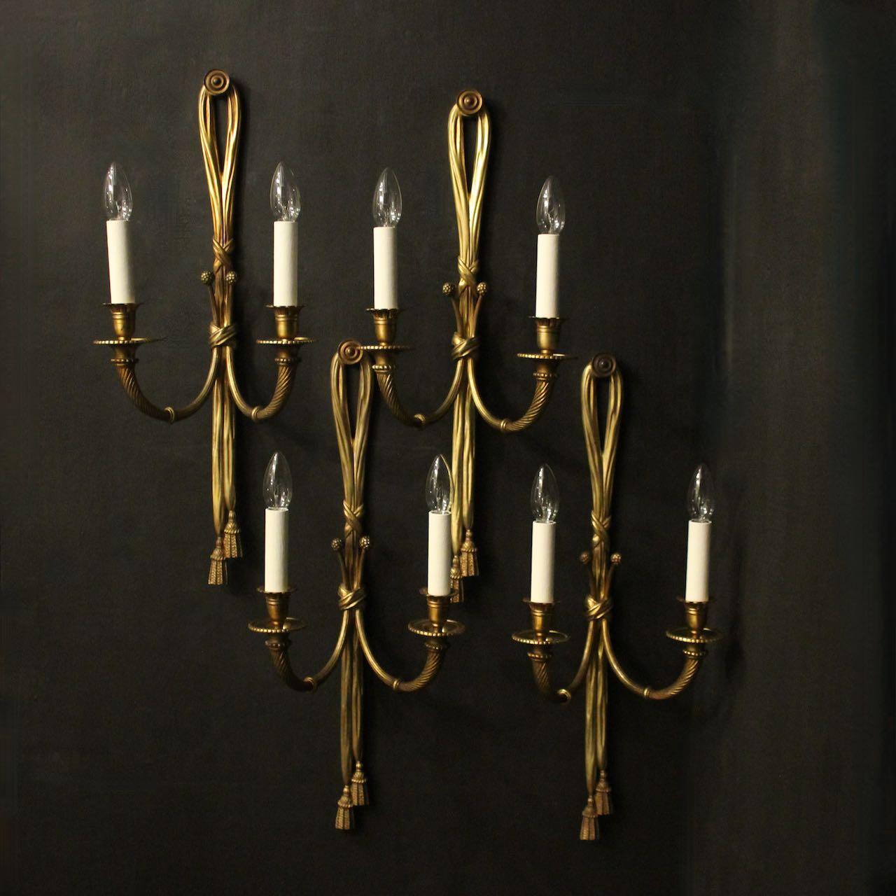 French Set of 4 Gilded Bronze Rope Wall Lights