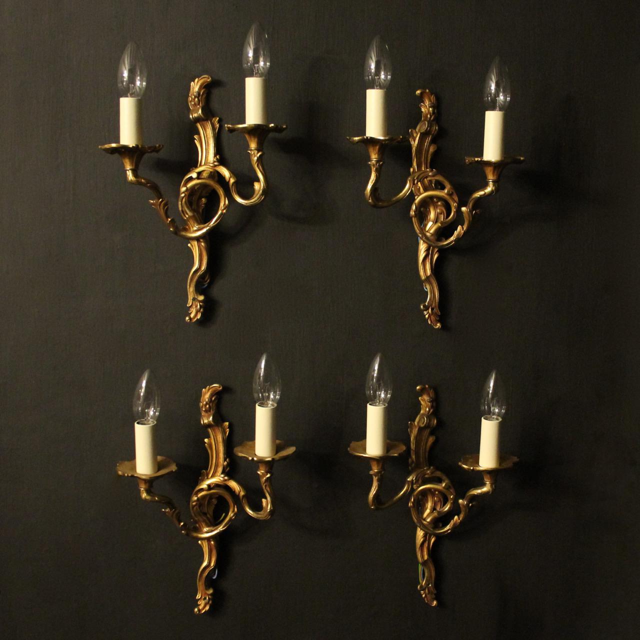 French Set of 4 Gilded Opposing Twin Arm Wall Lights