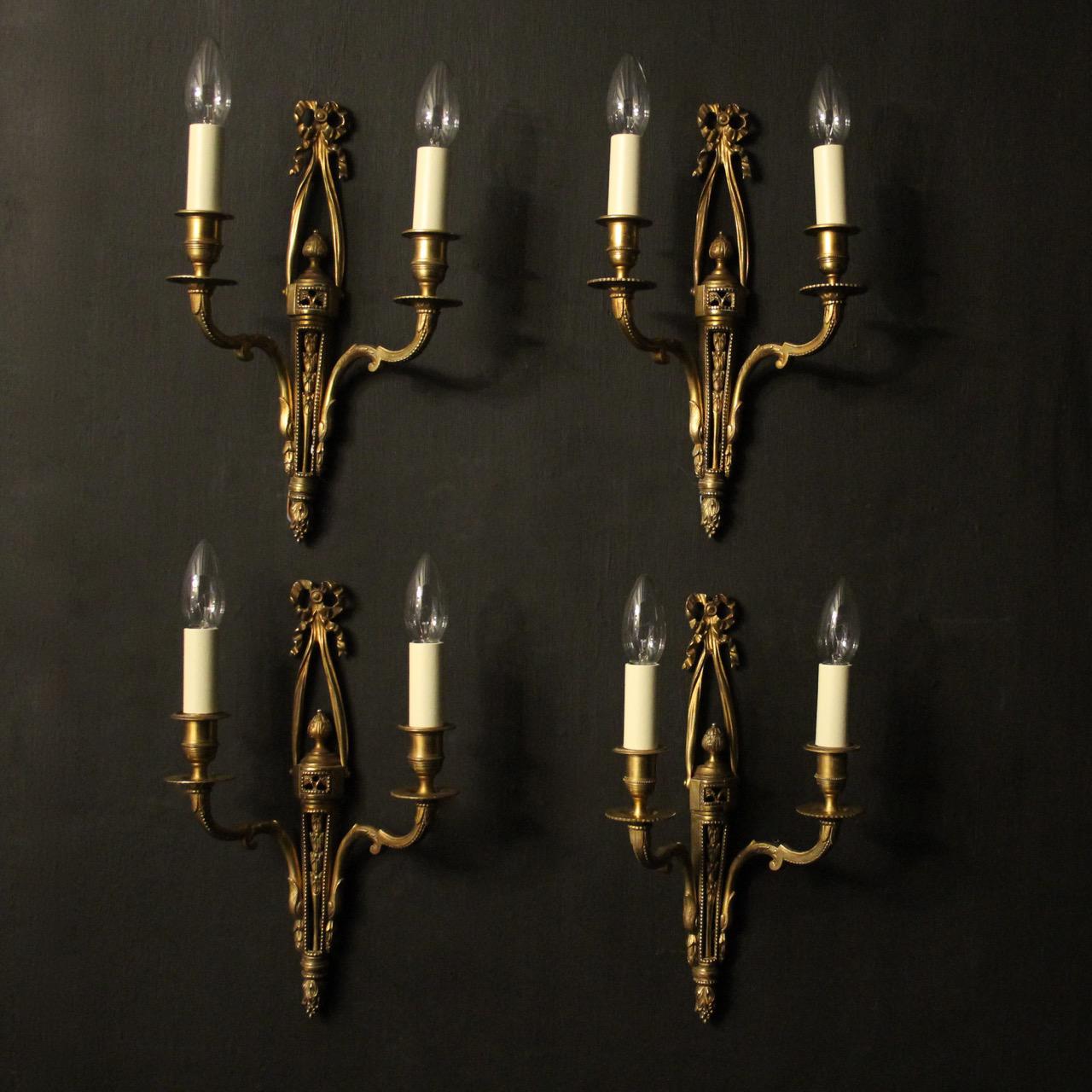 French Set of 4 Gilded Twin Arm Antique Wall Lights