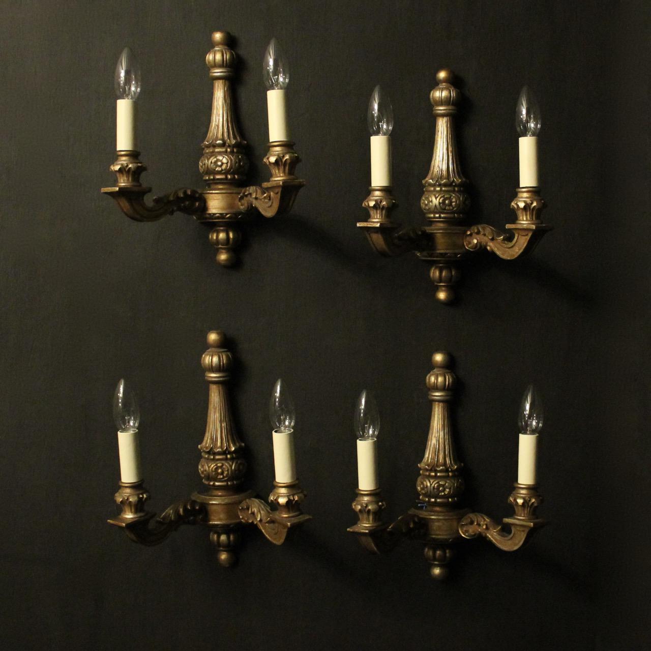 French Set of 4 Gilded Twin Arm Wall Lights