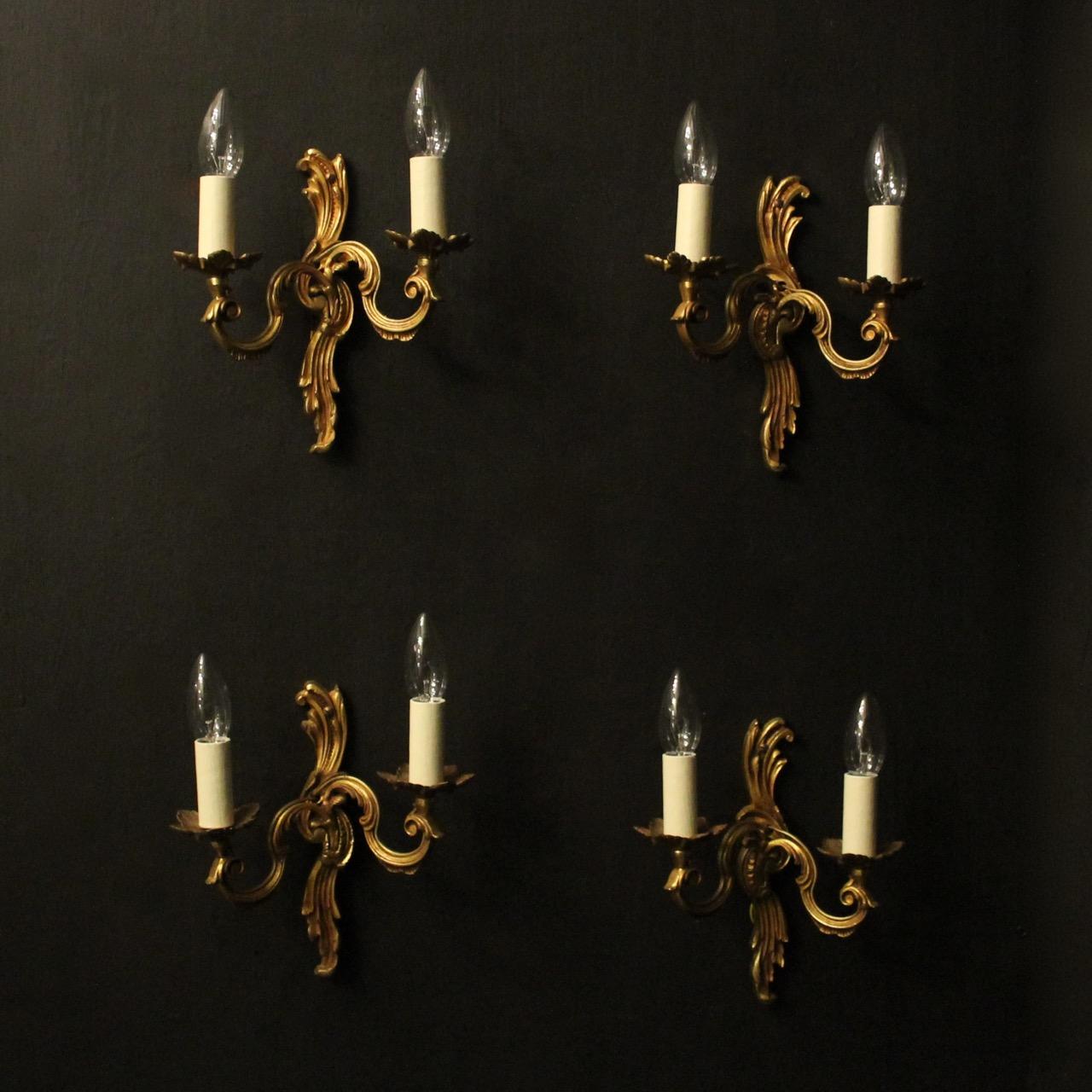 French Set of 4 Gilded Twin Arm Wall Lights
