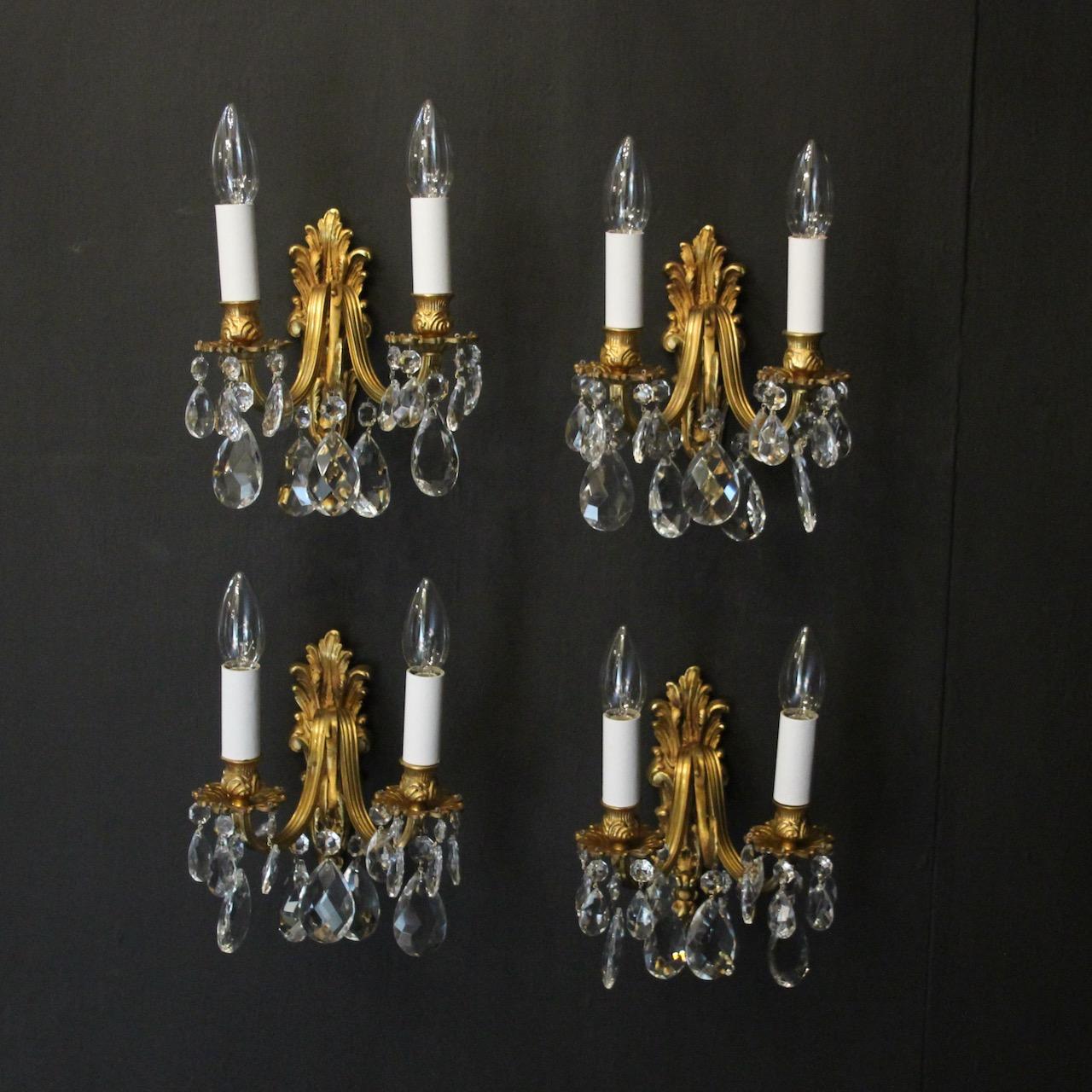 French Set Of 4 Gilded Twin Arm Wall Lights