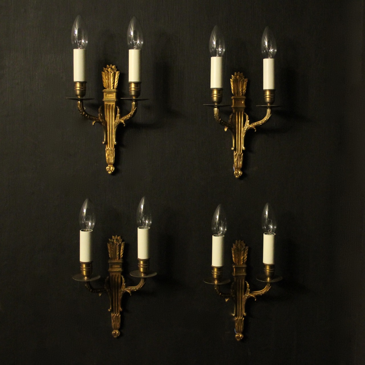 French Set of 4 Twin Arm Gilded Wall Lights