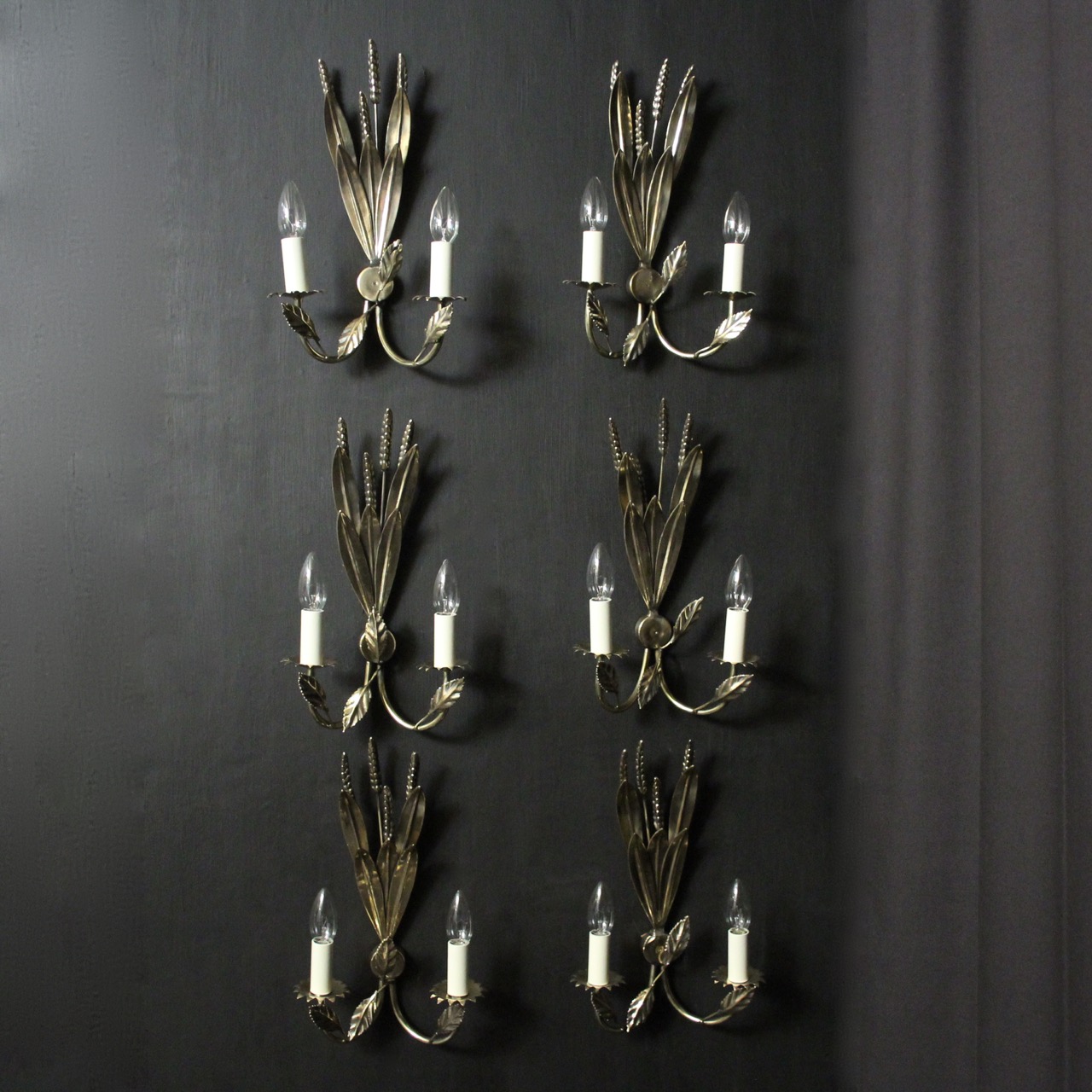French Set of 6 Brass Wheatsheaf Wall Lights