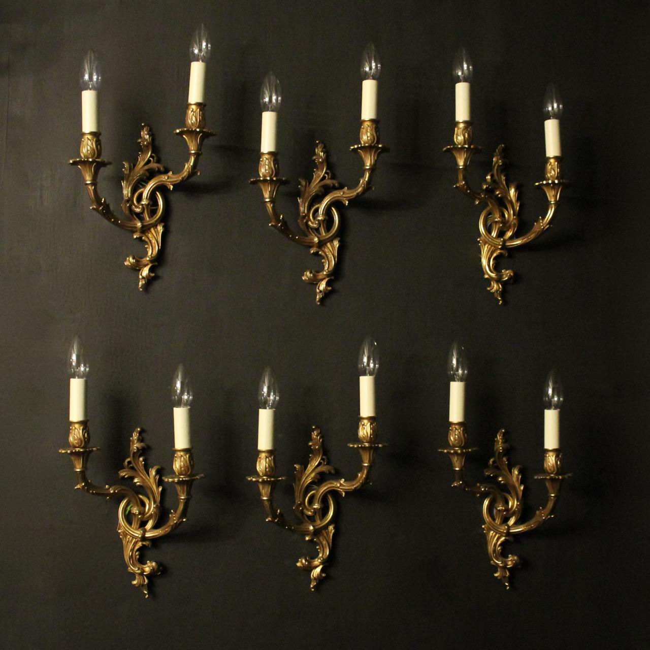 French Set Of 6 Bronze Twin Arm Wall Lights