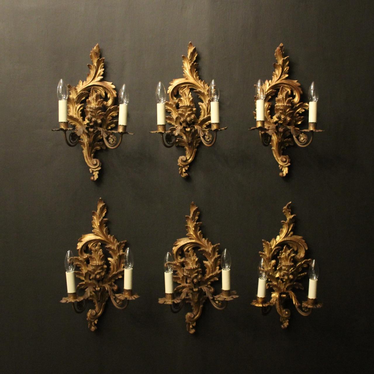 French Set Of 6 Giltwood Antique Wall Lights