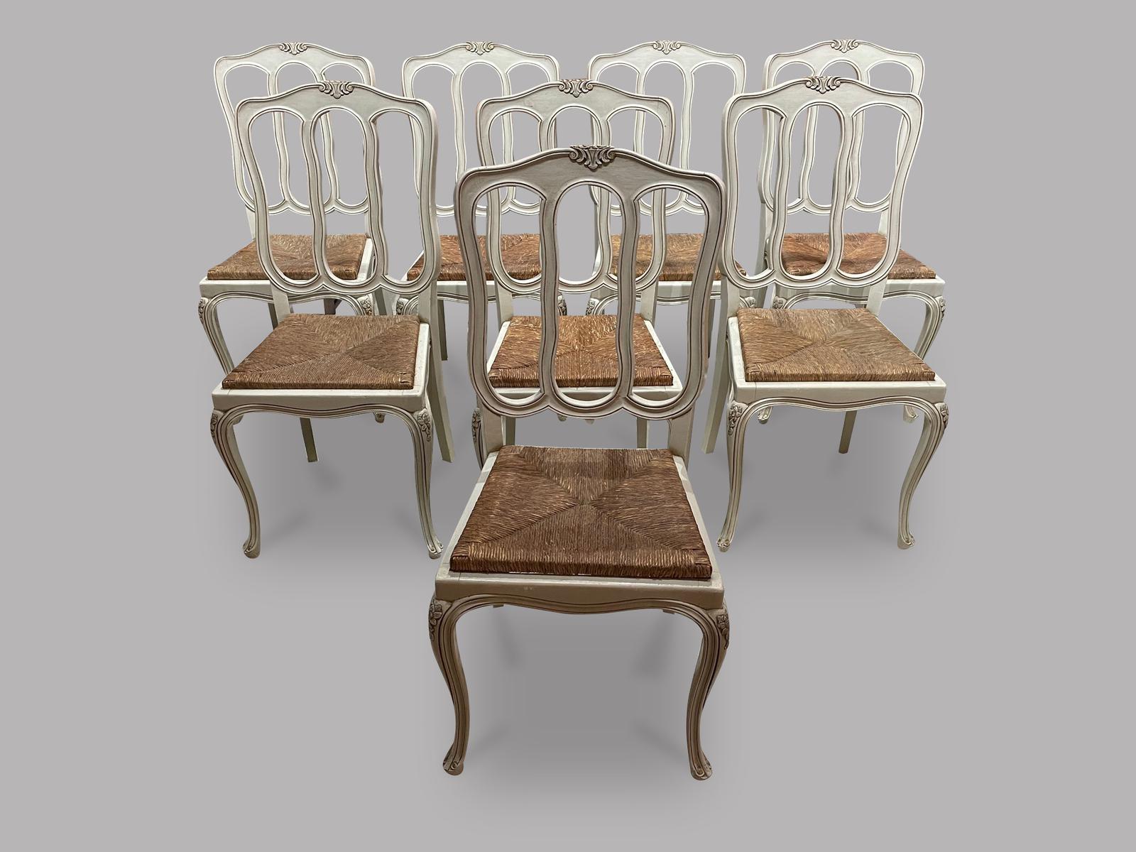 French Set of Eight Rush Seated Chairs