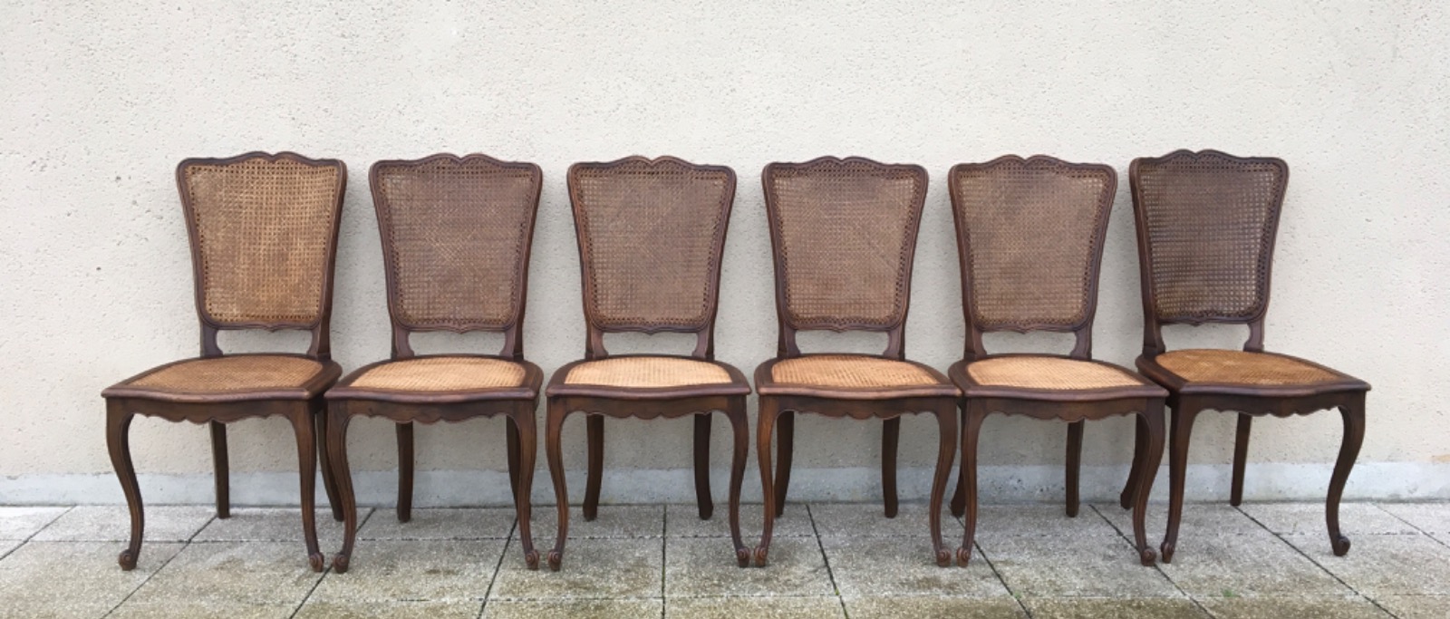 French Set of Six Bergère Cane Dining Chairs Louis XV Style