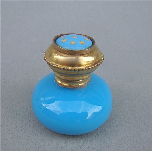 French Silver Gilt, Enamel & Opaline Glass Scent Bottle c.1880