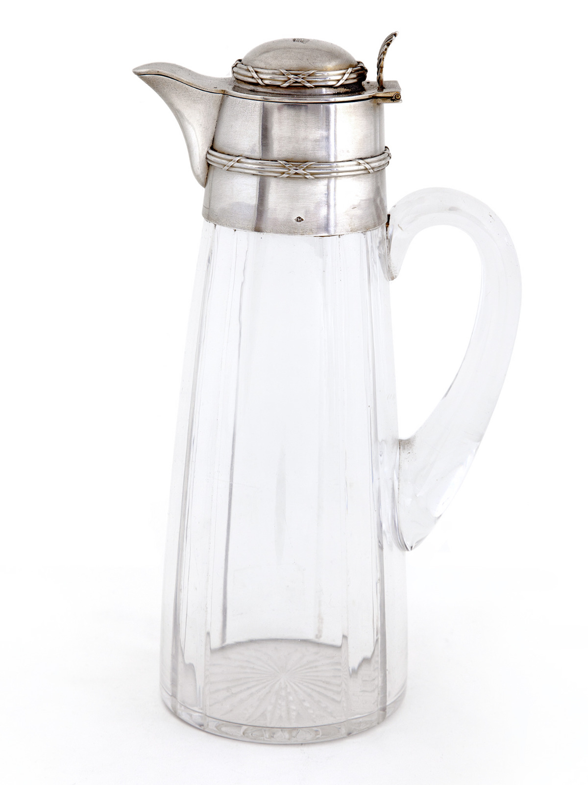 French Silver Mounted & Glass Claret Jug with a Hinged Domed Cover Engraved with a Coronet