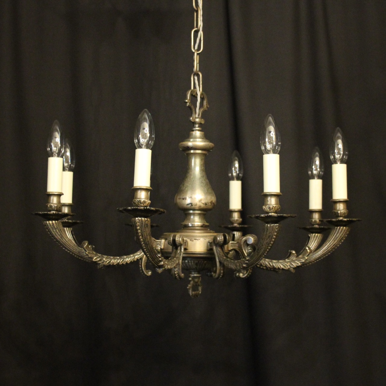 French Silver Plated 8 Light Antique Chandelier