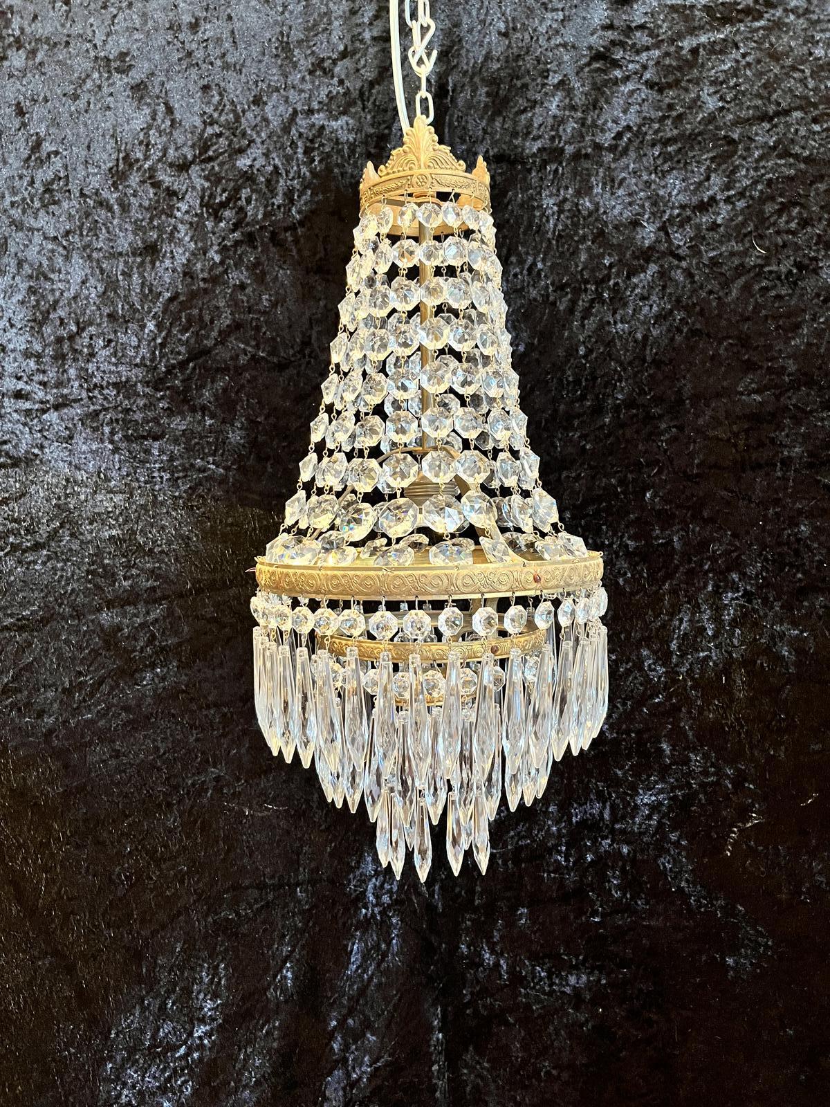 French Single Light Empire Waterfall Antique Chandelier