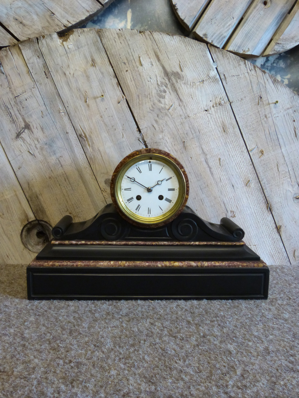 French Slate Drum Head Mantel Clock c.1870