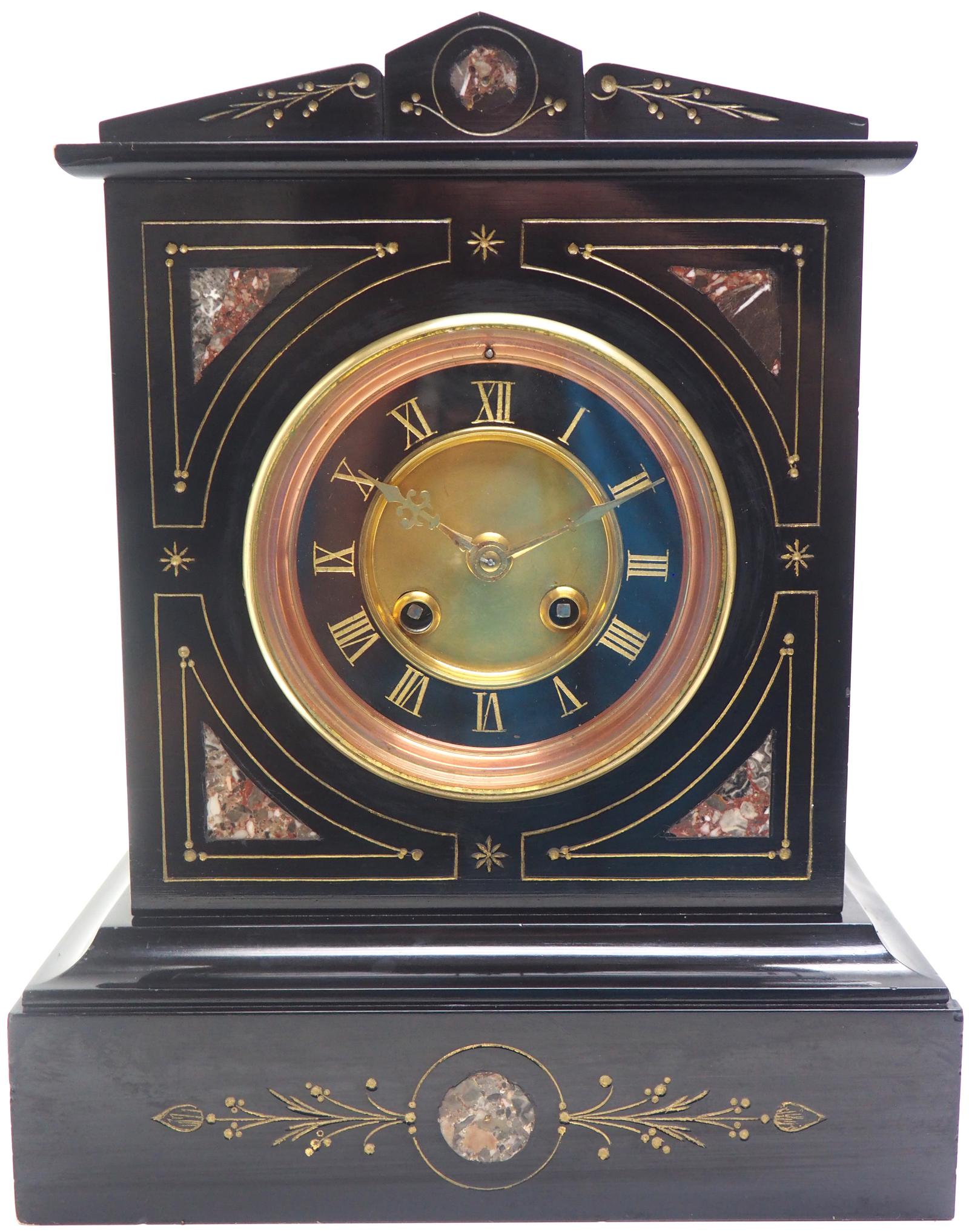 French Slate & Marble Mantel Clock 8 Day Striking Mantle Clock