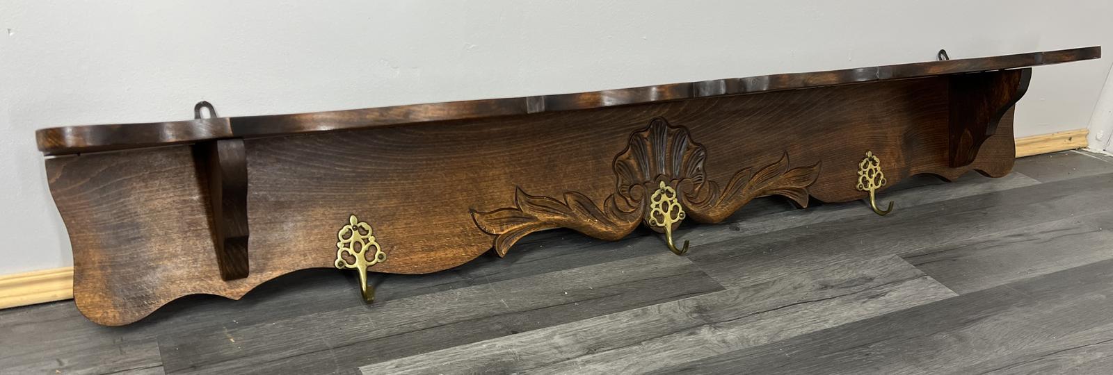 French Solid French 3 Hook Ornate Carved Coat Plate Rack