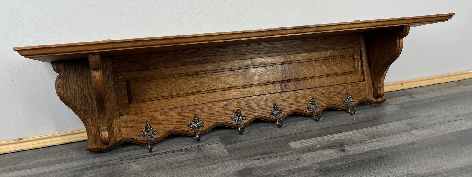 French Solid French 6 Hook Ornate Carved Coat Plate Rack