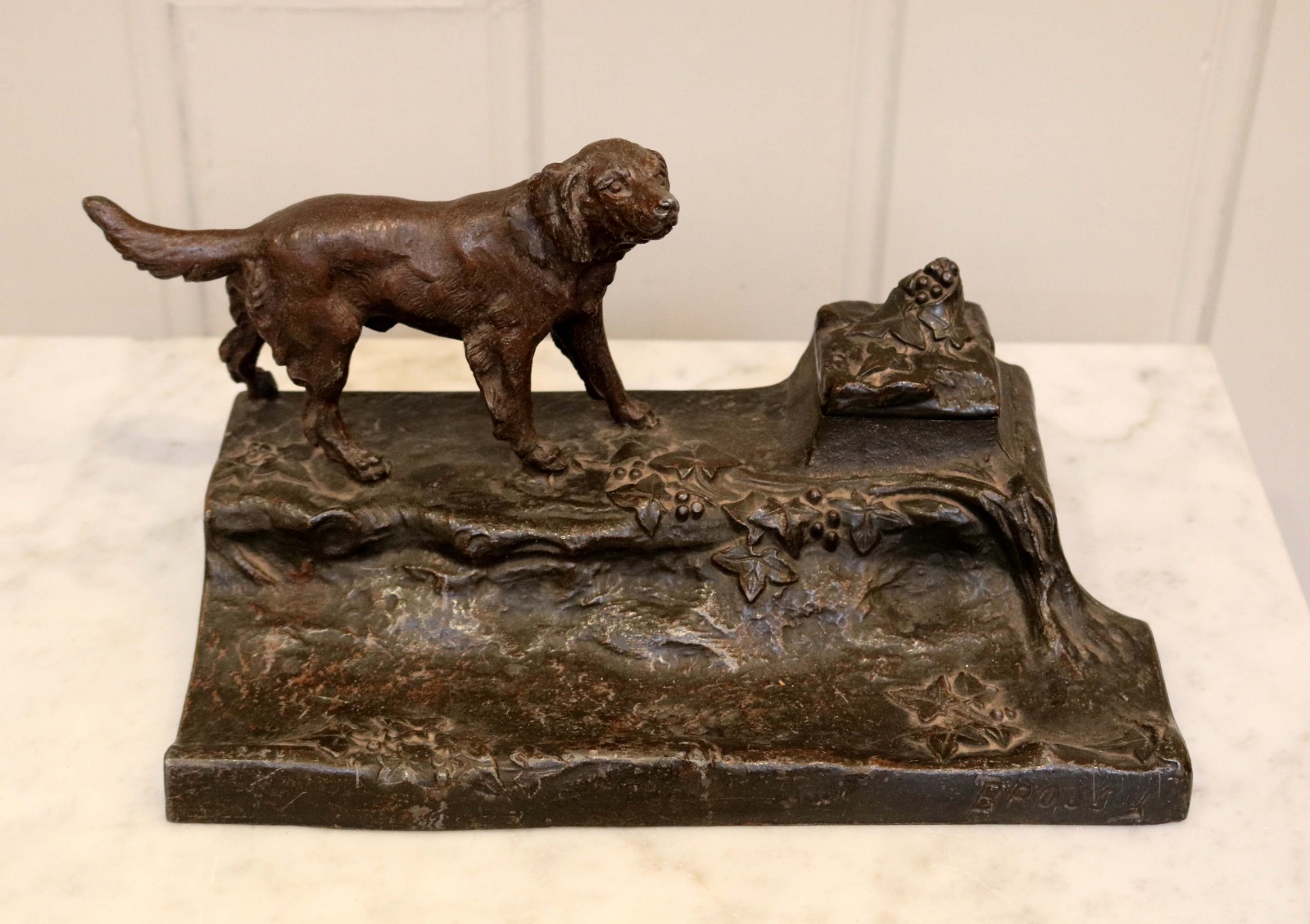 French Spelter Dog Ink Stand c.1900