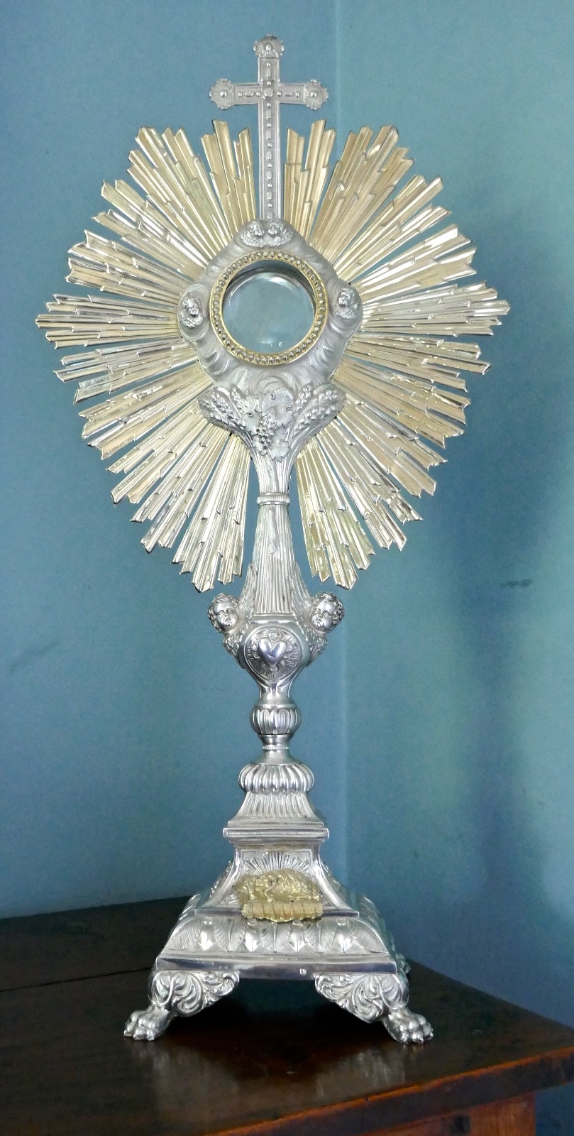 French Sterling Silver & Vermeli Monstrance 1840 Decorated with Cherubs