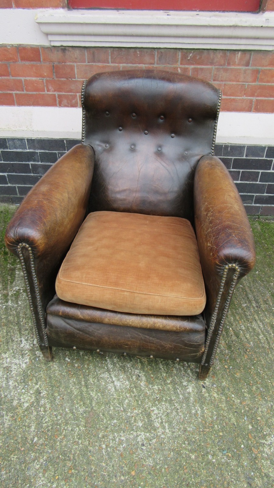 French Studded Leather Club Armchair