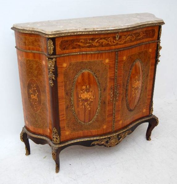 French "Style" Inlaid Marble Top Cabinet (1 of 1)