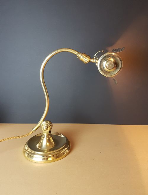 French Swan Neck Adjustable Piano Desk Lamp; Rewired & Pat Tested c.1910