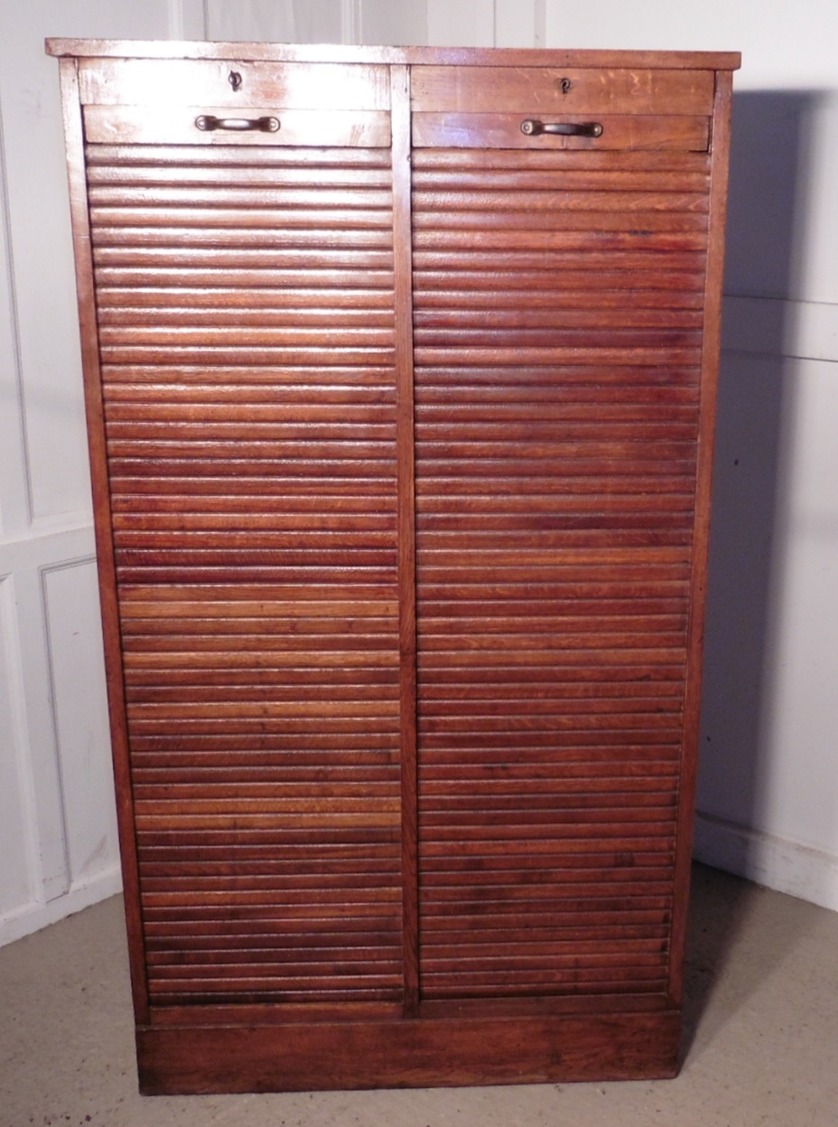 French Tambour Double Fronted Oak Art Deco Filing Cabinet c.1930