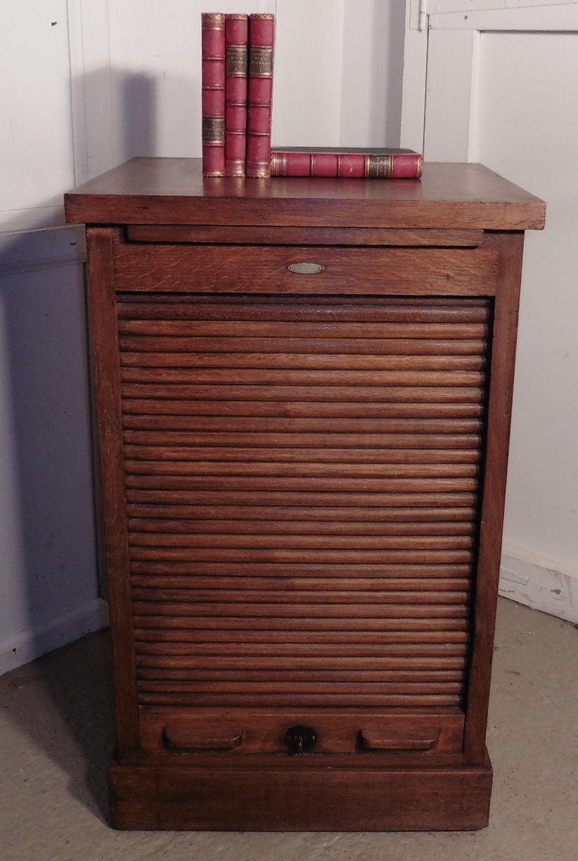 French Tambour Fronted Oak Art Deco Filing Cabinet, by Standard