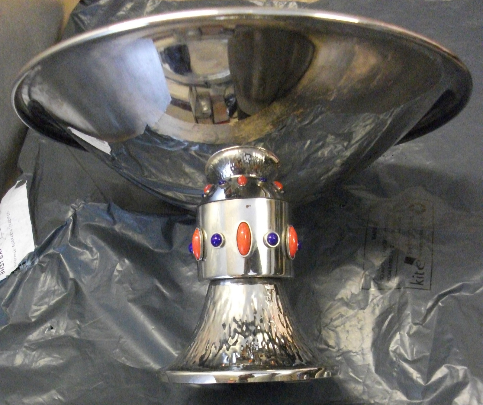 French Tazza Comport Chrome Plated with Decorative Glass Stones & Texturing