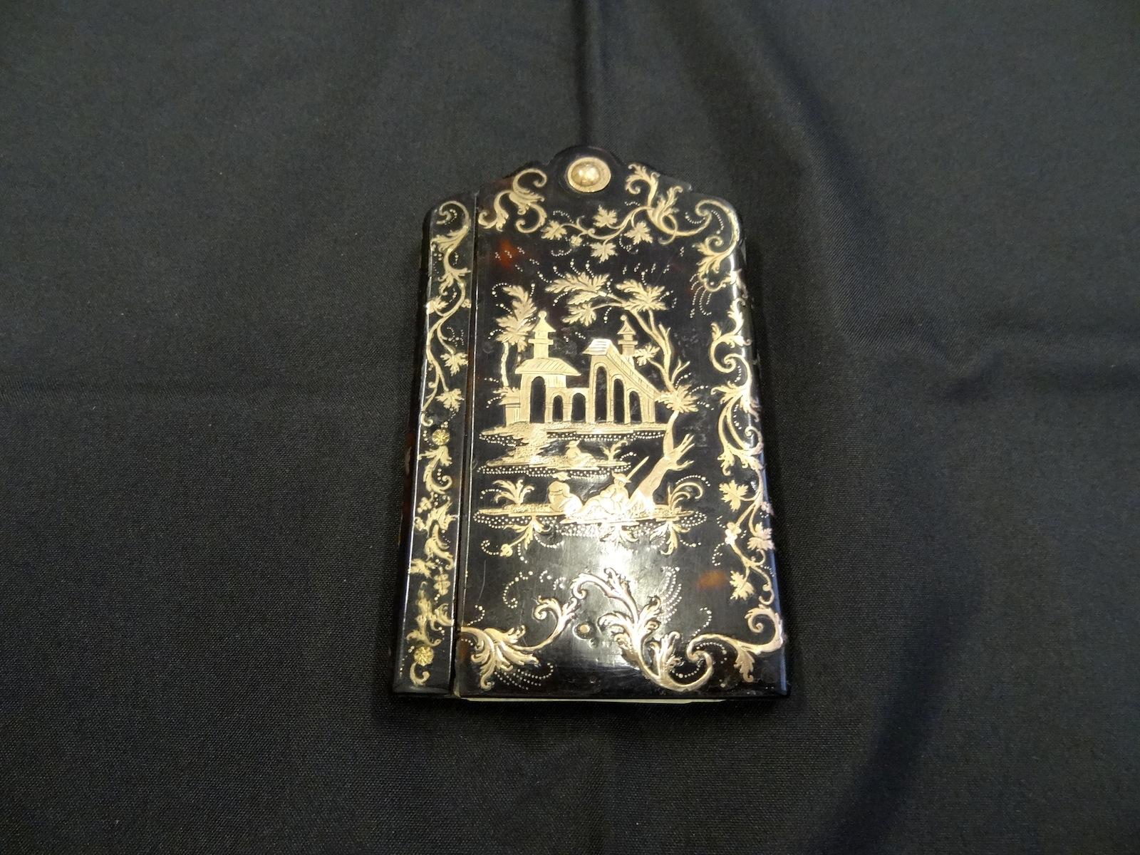 French Tortoiseshell & Ivory Carnet Case, Inlaid in Gold, 19th Century