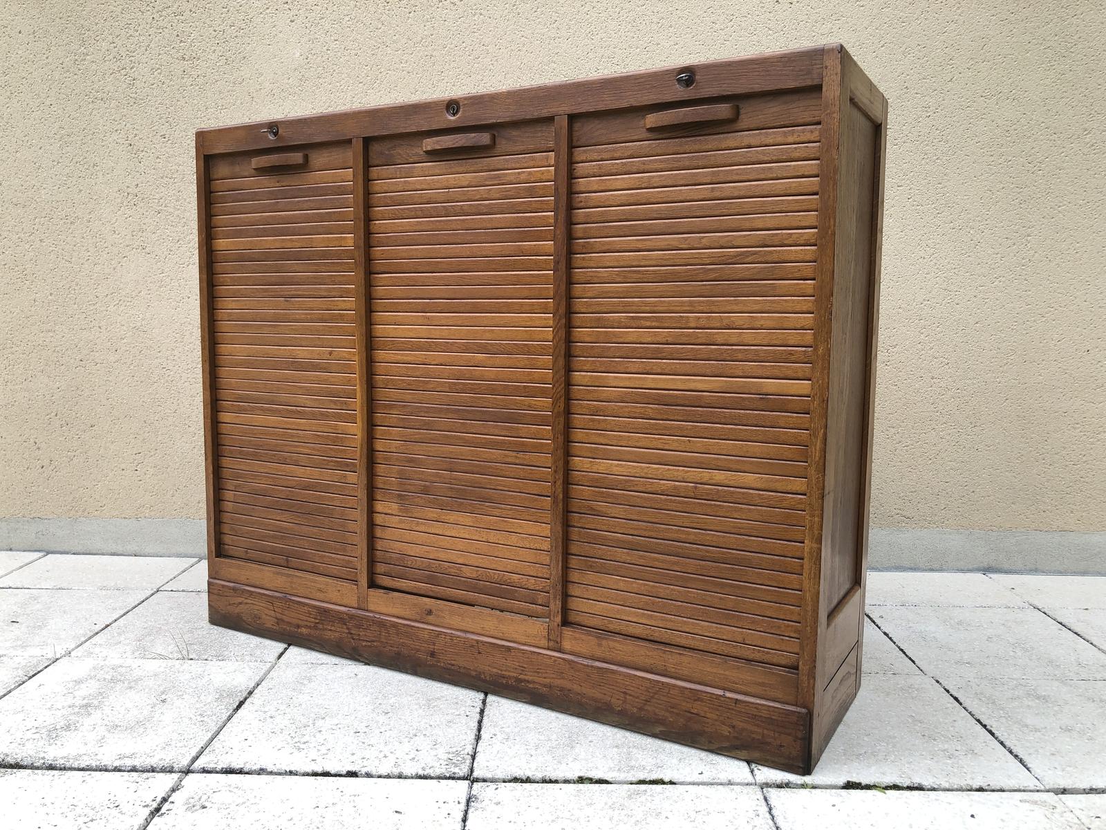 French Triple Fronted Tambour Filing Cabinet Roller Shutter