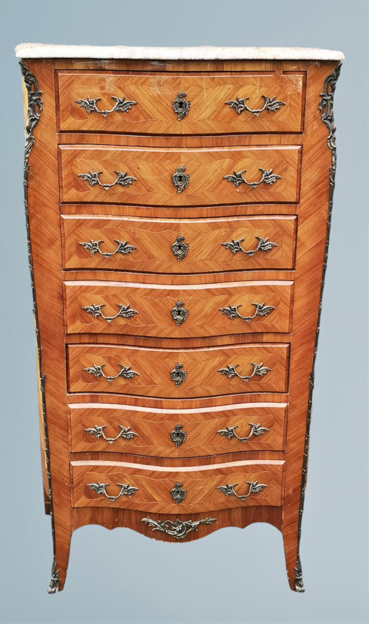 French Tulipwood and Gilt Metal Mounted Serpentine Chest (1 of 16)