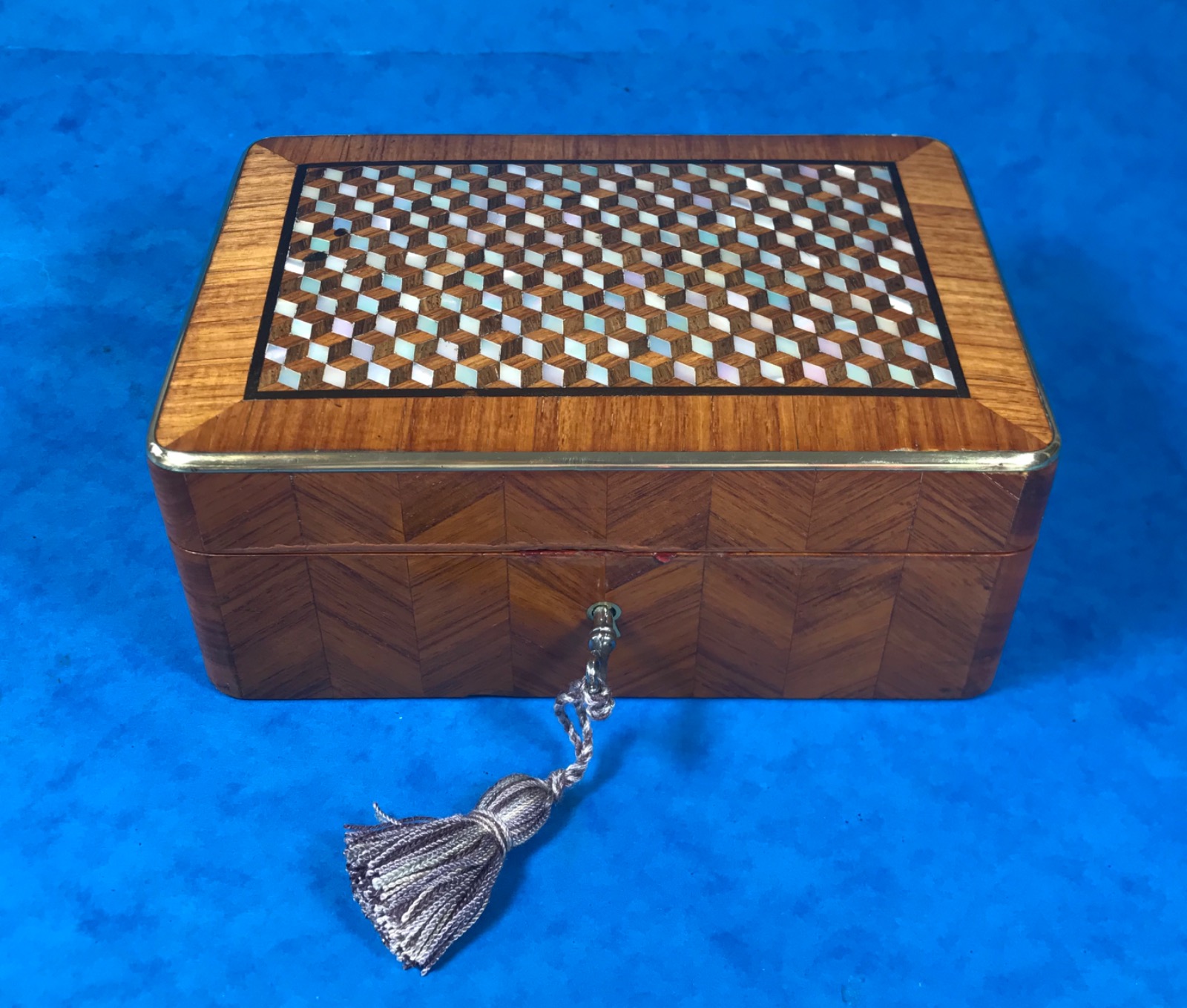 French Tulipwood Jewellery Box with Mother of Pearl Inlay c.1850