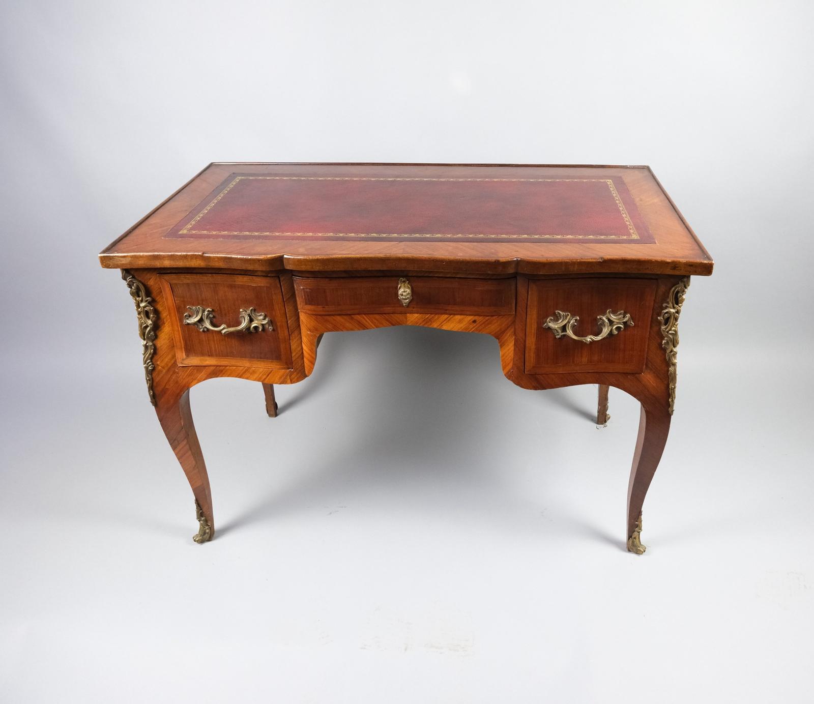 Hutton-Clarke antiques are pleased to offer a beautiful French tulipwood writing desk, circa 1860. Freestanding with an inset leather top, fine quality mounts and three drawers. A lovely example of its kind.