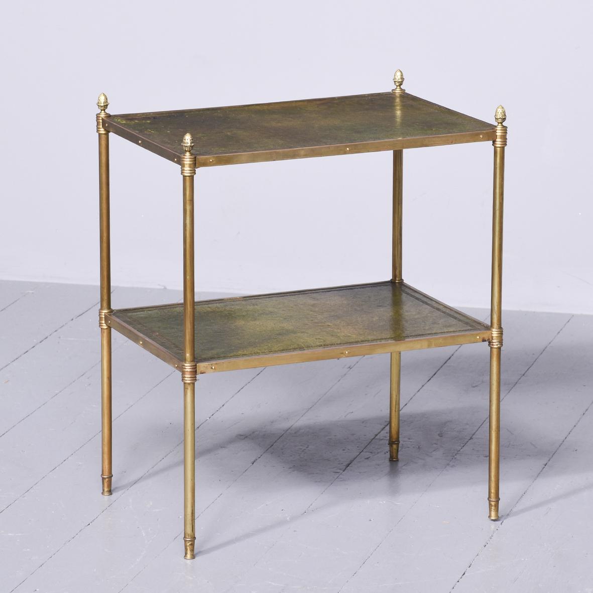French Two-tier Brass & Leather Topped Table (1 of 7)
