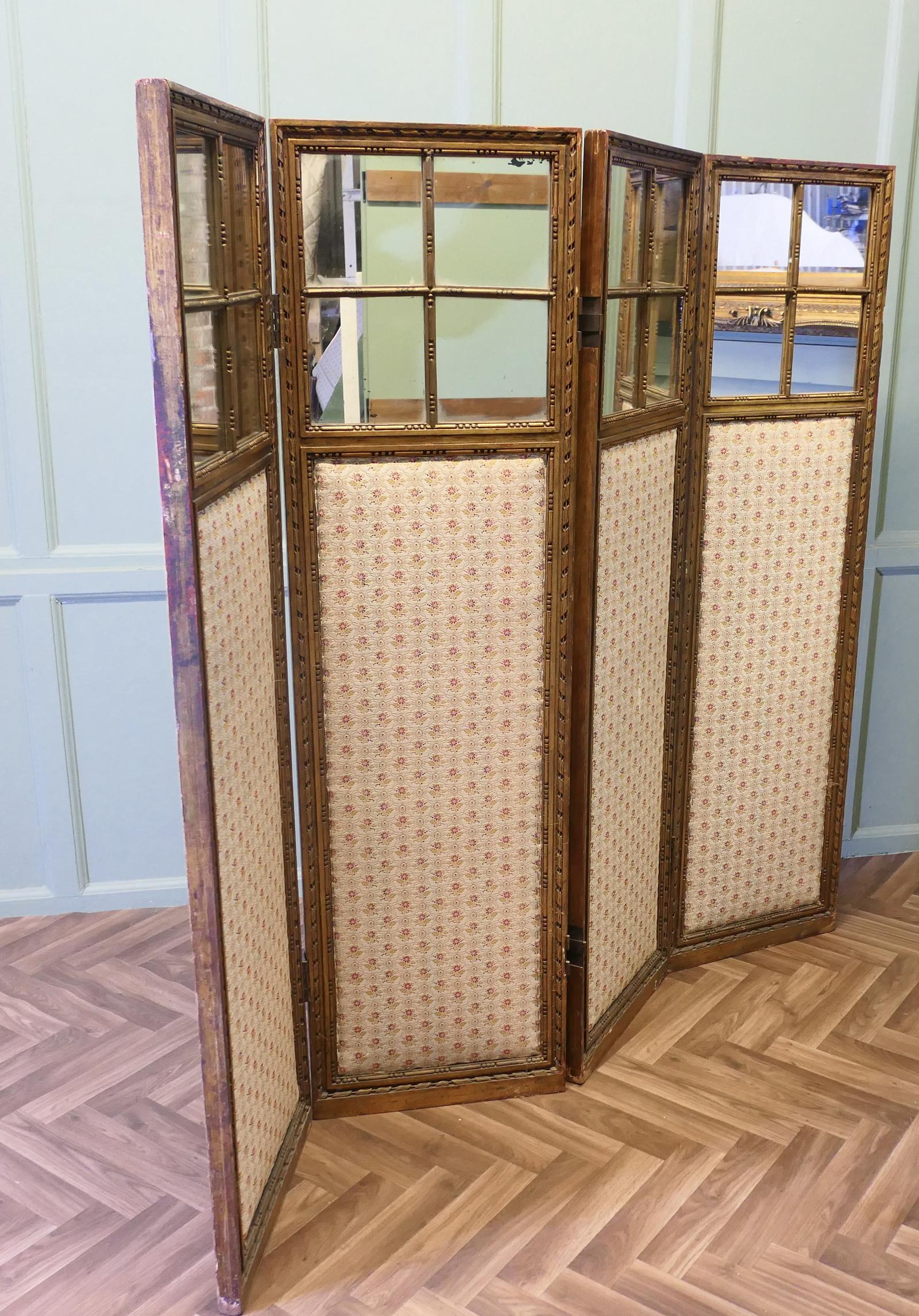 French Upholstered 4 Fold Screen Gilt Mirror Room Divider