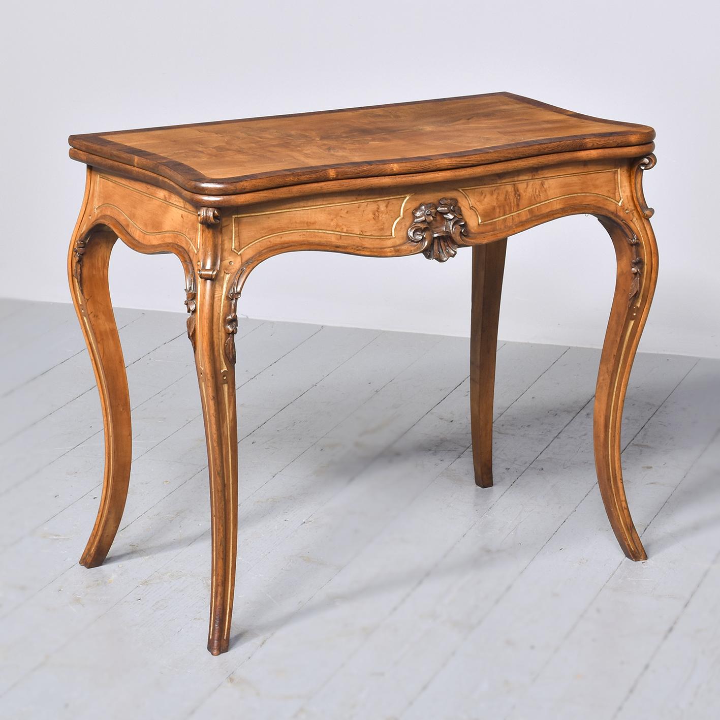 French Victorian Yew & Rosewood Fold-over Card Table / Games Table