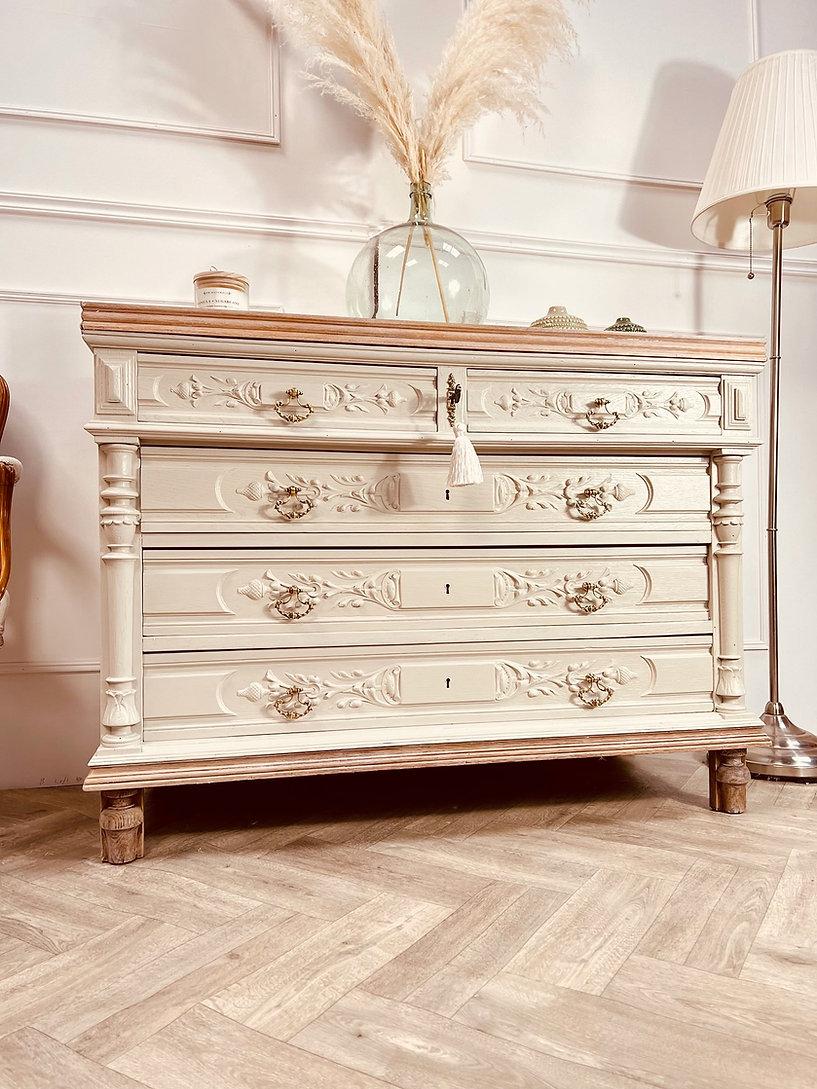 French Vintage Chest of Drawers / Soft White Chest / Carved Drawers