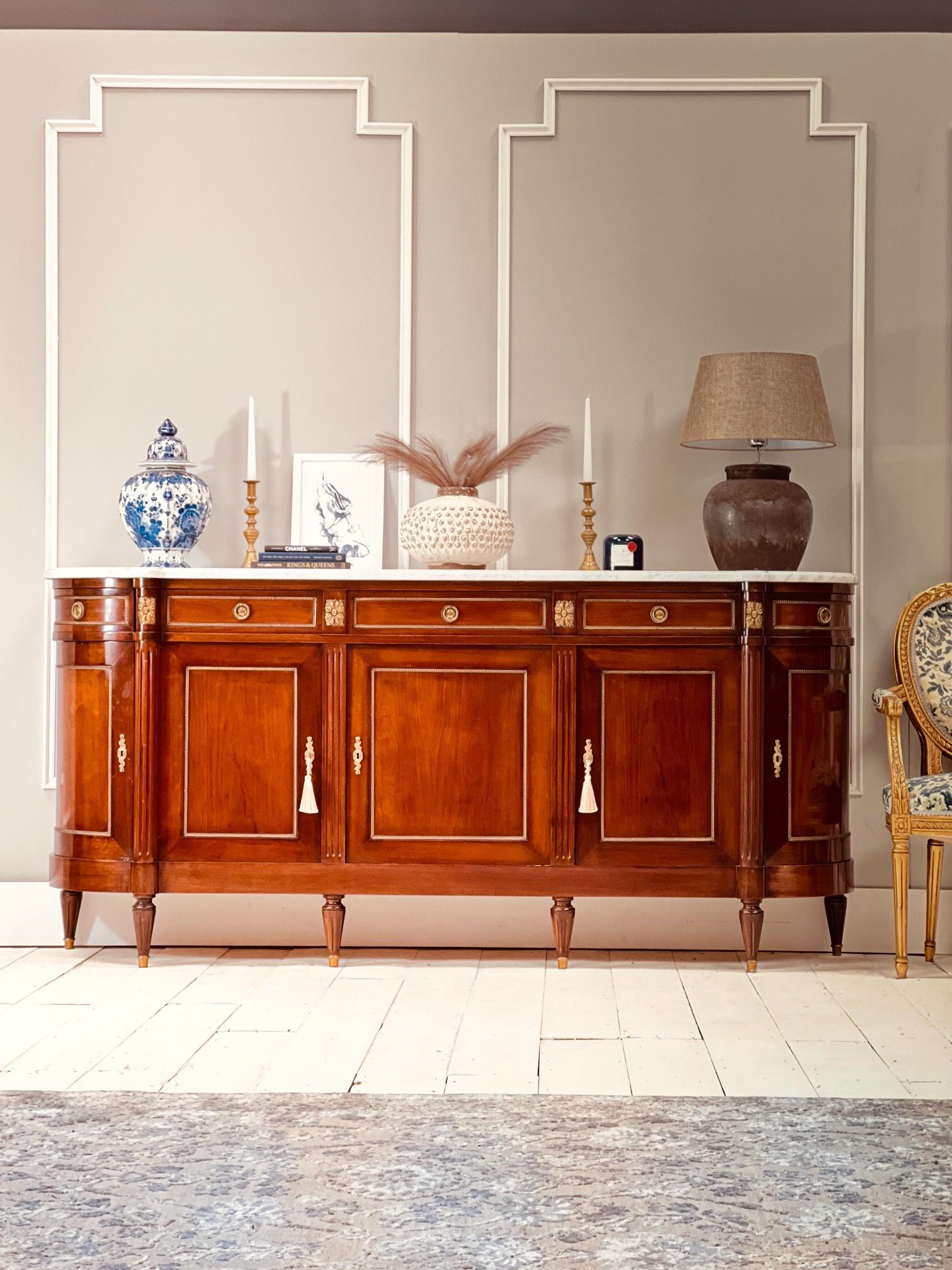 French Vintage Large Marble Sideboard / Louis XVI Cupboard