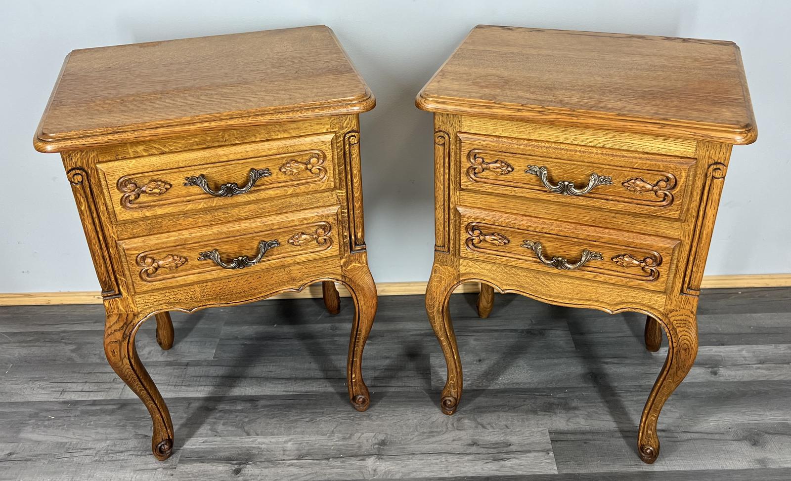 French Vintage Oak Bedside Tables Pair Cupboards Cabinets LOT 3909