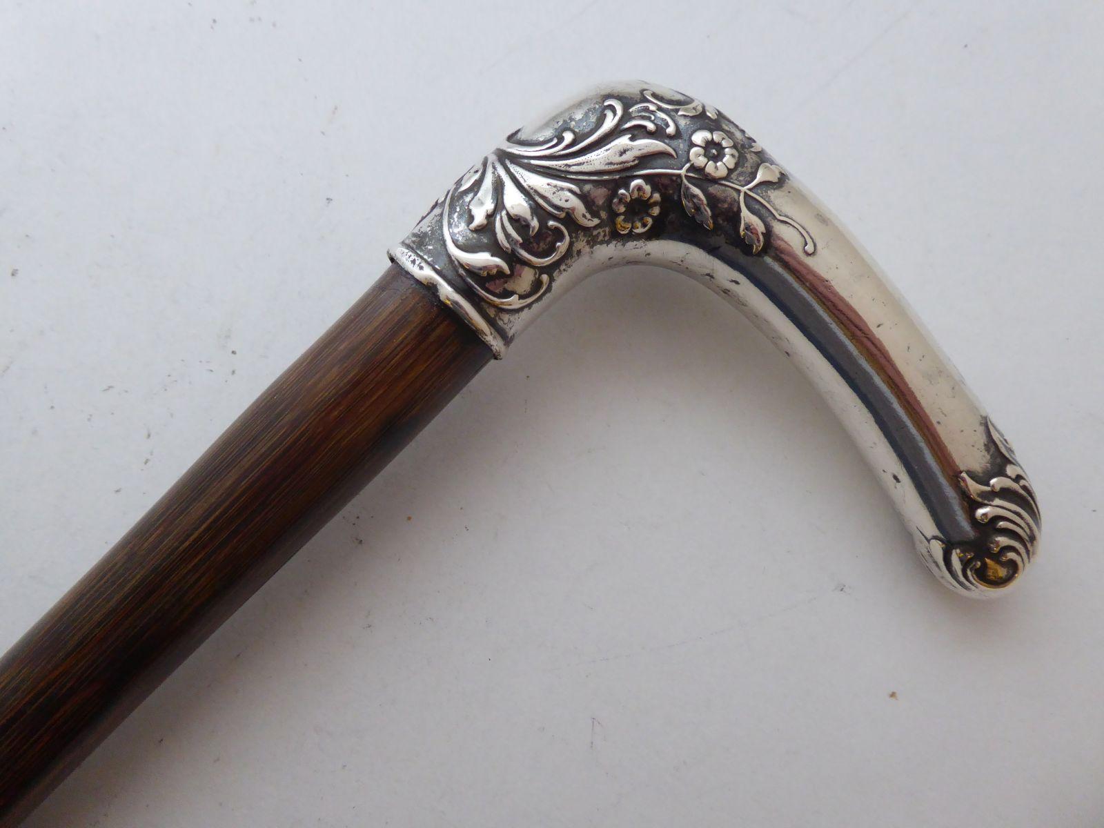 French Walking Stick Cane 800 Silver Partridge Wood Shaft c.1900