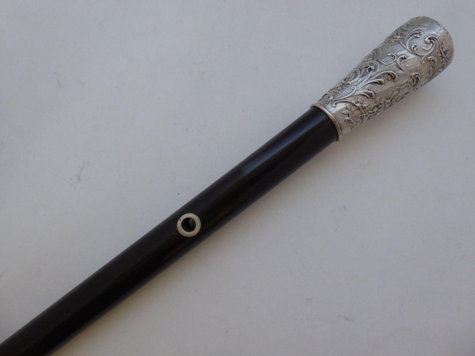 French Walking Stick Cane Hallmarked Solid Silver Pommel Rosewood Shaft c.1882