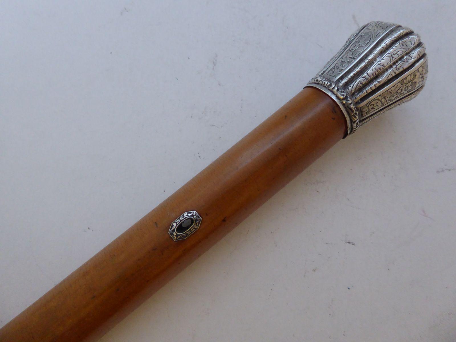 French Walking Stick Cane Silver Pommel Malacca Shaft Charles Blanchin & Dauvain Joseph Paris c.1880