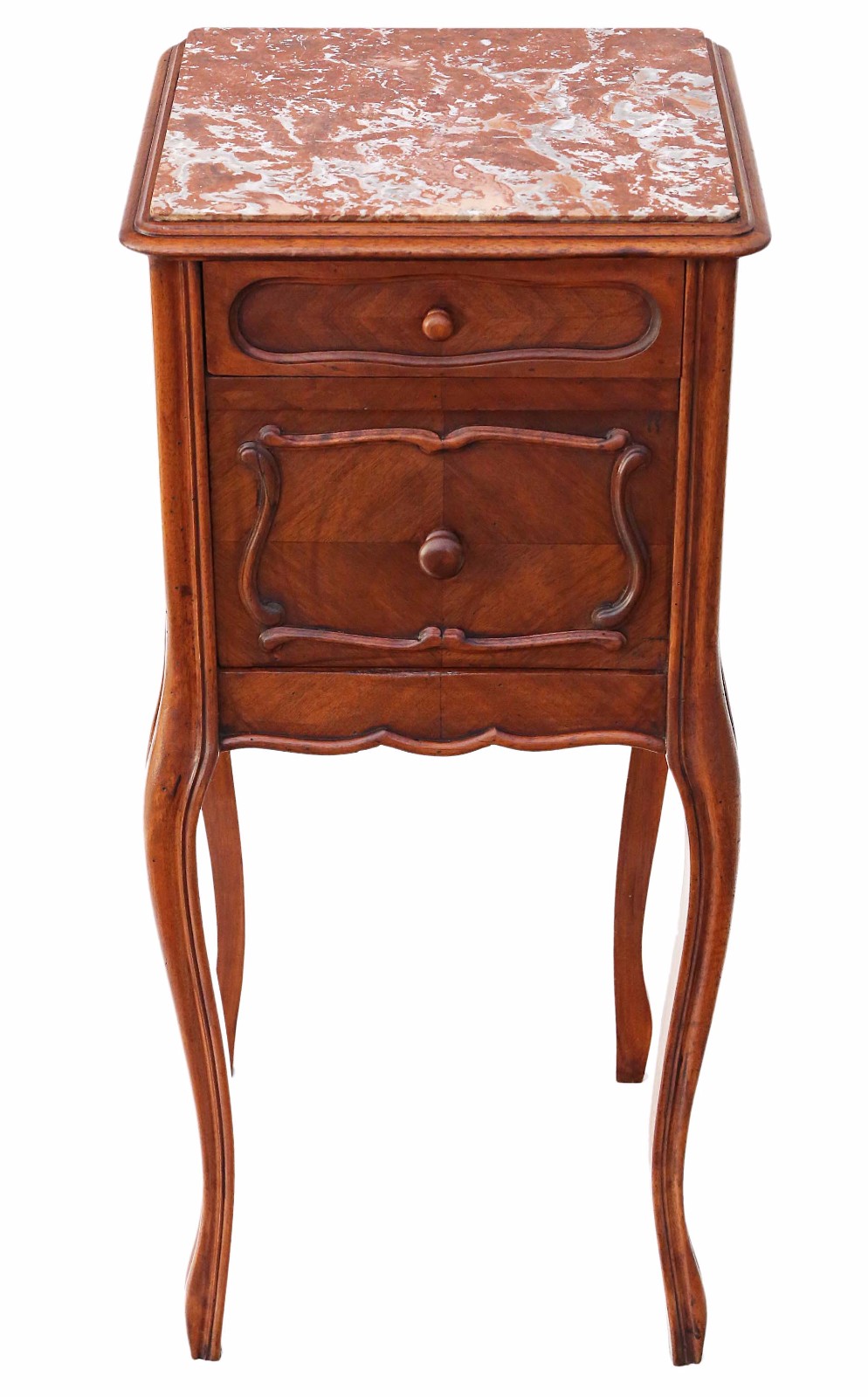 French Walnut Marble Bedside Table / Cupboard / Cabinet C.1920