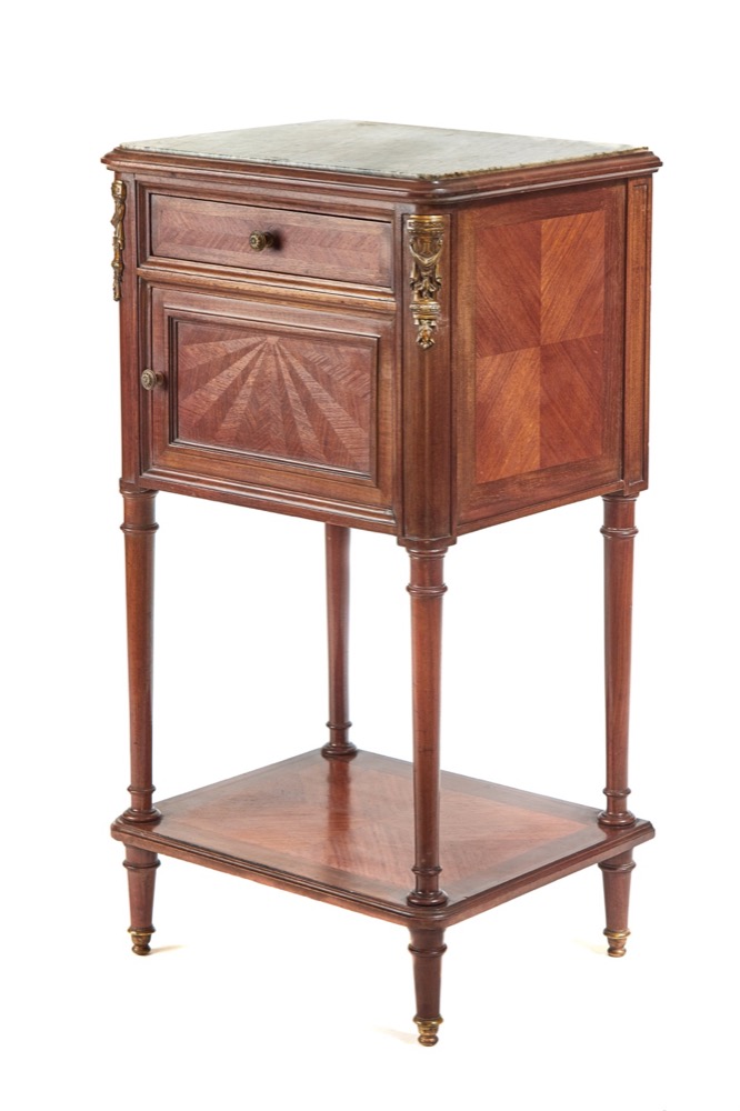 French Walnut Marble Top Bedside Cupboard c.1880
