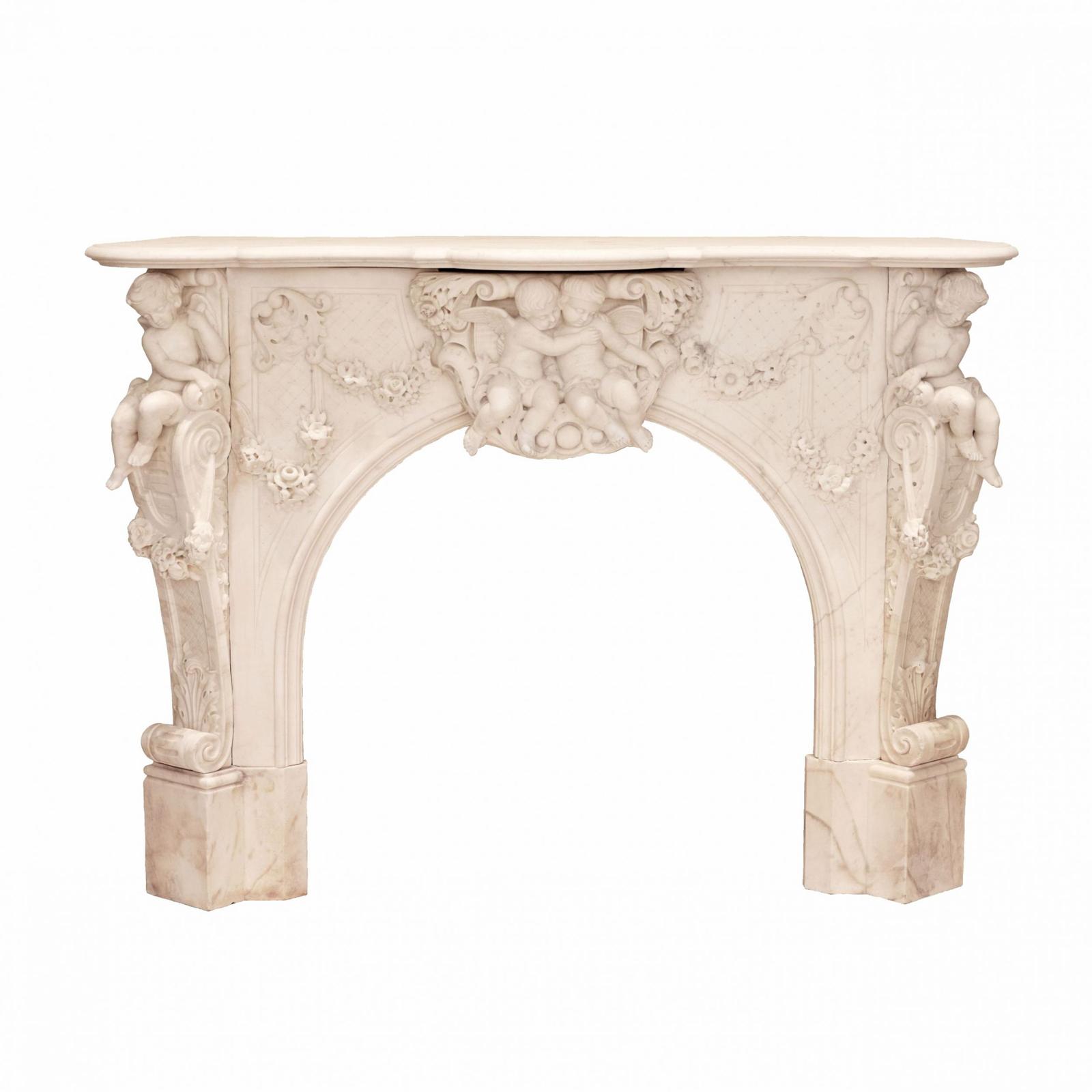 French White Marble Fireplace with Cupids - Louis XV Style 19th Century