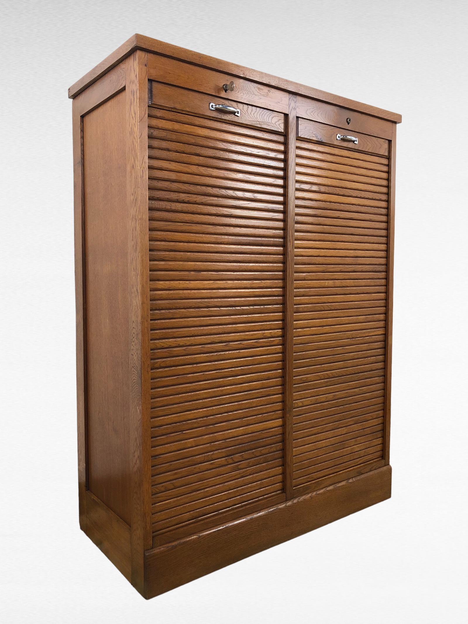 French Wooden Filing Cabinet Tambour Double Roller Shutter