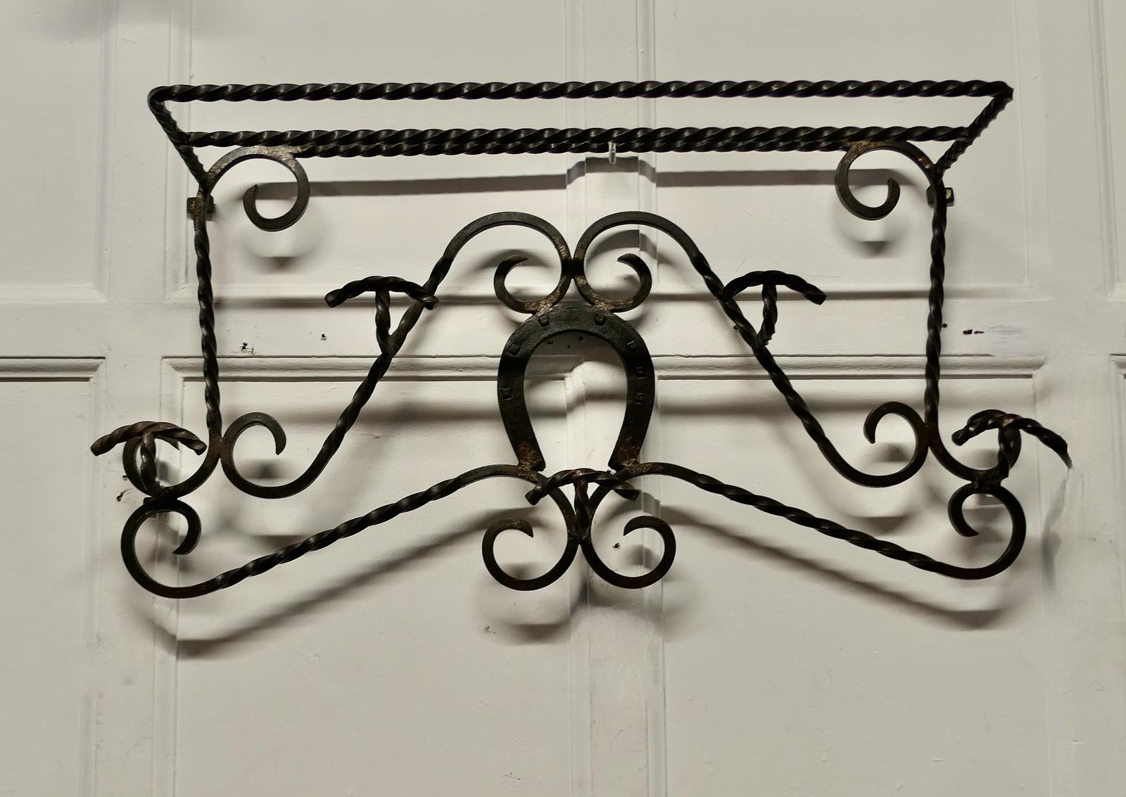 French Wrought Iron Wall Hanging Rack for Coats & Tack