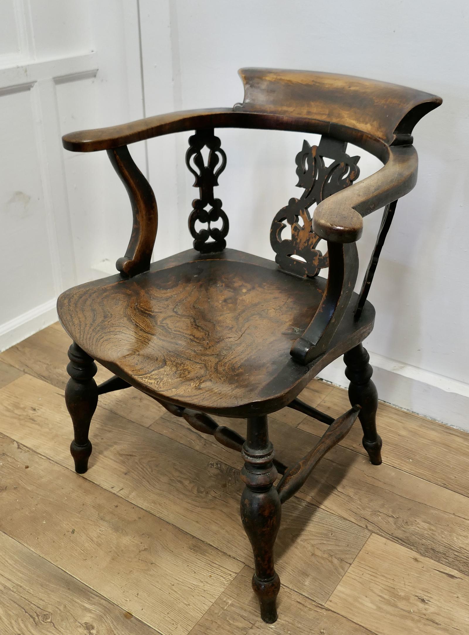 Fretwork Back Elm Windsor Desk Chair