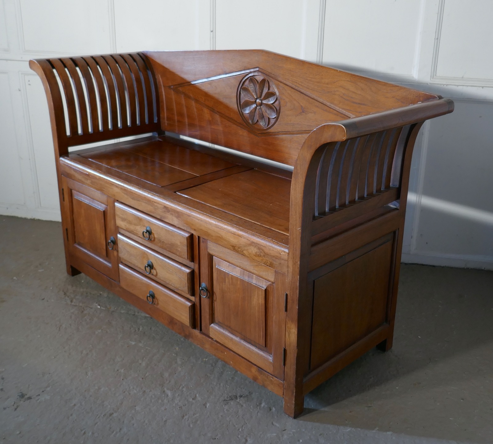 Fruitwood Settle, Bench, Hall Seat with Shoe Cupboard